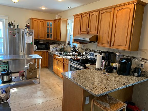 Spanning two floors and more than 2000 square feet, this fully renovated four bedroom, two bathroom apartment is not to be missed! Large renovated kitchen features granite counter-tops, stainless steel appliances, and breakfast. Kitchen opens up to formal dining room, with pocket doors that open to living room. One spacious bedroom with private front porch, an updated bathroom, in-unit laundry and private back porch complete the first floor of living space. Upstairs, you'll find a large, fully renovated bathroom, three large bedrooms, and one medium sized bedroom. Kitchen and bathrooms feature modern tile flooring, with hardwood throughout the living room and bedrooms, with high ceilings throughout. Shared back patio- perfect for summer grilling. Gas heat with newer insulation to save on utility bills. Located less than half a mile to Davis Square Red Line and even closer to the new Green Line extension, with easy access to Tufts University, and area amenities.