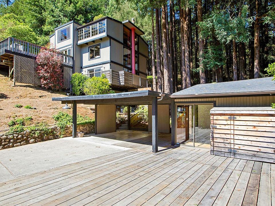 Quintessential Mill Valley retreat set amongst the redwoods yet bathed in light. This property is very private, on over a half acre lot and also close to town. The dramatic open living room has tall ceilings and a wall of glass that looks on to the majestic redwoods. The enchanting master bedroom feels like a hotel suite with two additional flex rooms. The expansive deck, views and easy access to trails cater to the Marin outdoor lifestyle.