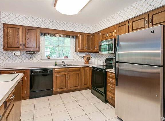 Absolutely stunning is the only way to describe the setting for this impeccably maintained, one owner home on 1.38 wooded acres in a sought after St. Charles neighborhood! The curb appeal is fantastic with mature trees, a cul-de-sac lot, brick façade, side entry, oversized 2 car garage (26 X 26), 18 foot wide garage door, a deep front porch that runs the width of the home, beautiful landscape beds, paver steps and walkway to the gorgeous, terraced back yard. Features include 5 bedrooms, 2.5 baths, 3,340 square feet, Living Room-Dining Room-Kitchen-Breakfast Room, ceramic tile floors, bow windows in the Dining Room and Living Room, built in bookcases, wood burning Fireplace with brick to ceiling and raised hearth, wet bar, crown molding, open Kitchen-Breakfast Room-Family Room plan, 2 pantries, Kitchen island, smooth top stove, lazy susan, built in desk, main floor laundry, attic fan, large bedrooms, lots of closets and storage areas, 3 walk in closets, walkout lower level, hi efficiency dual HVAC, humidifiers, 75 gallon water heater, deck with steps to the patio and more. There is easy access to Hwy 370 and Lambert International Airport. You will be WOWED, MUST SEE!