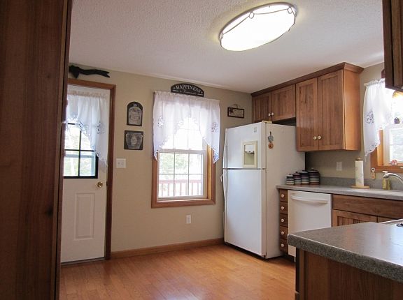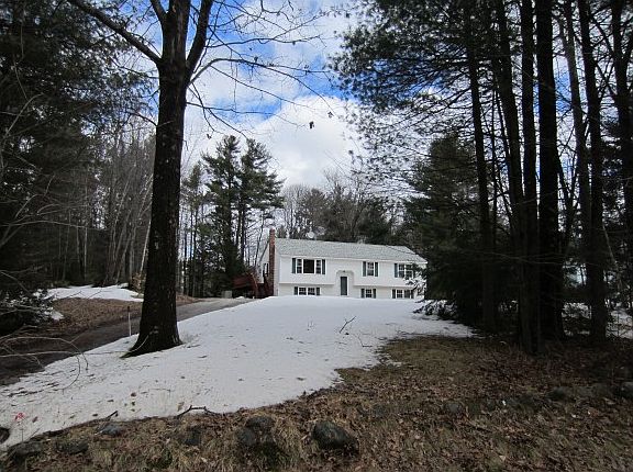 Antrim NH Home for sale, 3 Bedroom, 1.75 Bath, +/- 1400 SqFt on +/- 0.89 acres. This terrific open concept split-entry is located in a cul-de-sac twelve home neighborhood. It boasts an updated kitchen with corian counters and seamless sink, 16.5x12 living room, and 12x12 dining room. Master bedroom with updated 3/4 bath. Two good-sized bedrooms and updated full bath. Newer oak hardwood floors: living room, dining room, kitchen, entry and stairs. 50x22 area in the daylight lower level ready to be finished the way you want. Huge wrap around deck with level wooded yard. Many improvements: freshly painted interior and exterior trim, Mitsubishi AC wall unit, newer roof, newer deck, newer slider and much more. Must see it to appreciate, schedule your showing today.