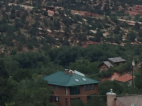 This custom built contemporary stucco home is located high in the hills above Manitou Springs and has been designed to feature beautiful panoramic views of Pikes Peak, Garden of the Gods and the cities of Manitou and Colorado Springs. This stunning residence is built with the unique "Thermal Envelope Home" layout to allow solar heated air to circulate around the entire house, adding an extra layer of insulation. Built in hot tub with amazing heat rock walls and surrounding wood to keep heat in like a sauna!