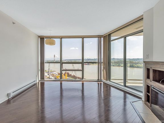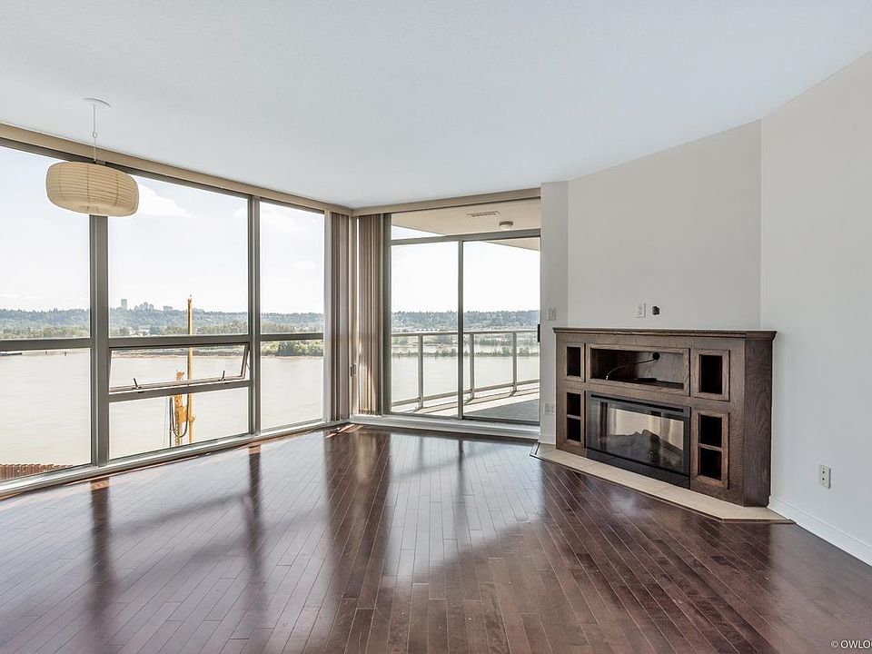 Welcome to the Inter Urban in the heart of New West. Unobstructed, stunning Southeast views of the Fraser River, steps to the Quay, New West Skytrain Station, Pier Park, Riverfront Walk and more. With floor to ceiling windows and an abundance of natural light, this 2 bed + 2 bath, open concept suite offers engineered hardwood flooring, a gourmet kitchen with extended granite counter tops & stainless steel appliances. A beautiful gas fireplace with custom built-in surround to cozy up to. The master bedroom boasts a large & spacious walk-in closet & en-suite. Loads of storage including a flex room. Maximize your living space while enjoying your water views form your covered patio. 1 parking. Great investment property, rentals and pets allowed. Don't miss out this opportunity.