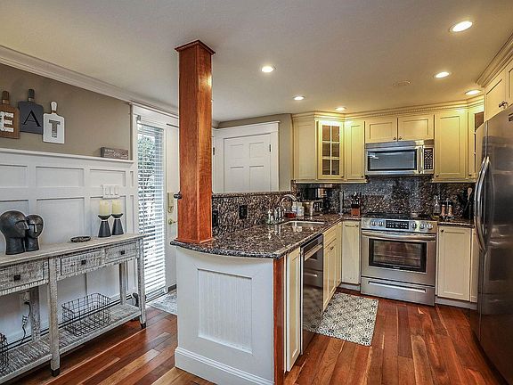 Furnished unit conveniently located near highway in Bedford with awesome cherry hardwood floors, Granite counter tops, Stainless Steel appliances, custom woodwork and built ins. Spacious living room with electric fireplace, slider to private back deck. Master bedroom with double closets with custom features. A full bath with shower and jacuzzi tub. The second bedroom offers an abundance of built ins. In unit laundry and extra storage in the basement. Available for short term lease. Short term rental with one parking included.