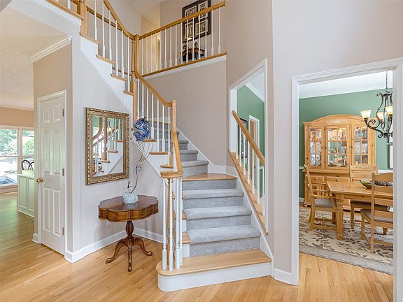 The Braeside section of Biltmore Park is fabulous! This home with traditional style floor plan has a freshly painted interior and new carpet upstairs. Hardwood floors on the main (LED lighting throughout) with welcoming foyer, dining room, living room, family room (wood burning fireplace and gas starter). Updated kitchen has granite counters and stainless appliances, breakfast nook, walk-in pantry, and a half bath. Upstairs: primary bedroom with bathroom featuring Bain Ultra Massage tub and large walk-in closet; 3 other bedrooms and another full bath, plus a convenient laundry room! Finished walk-out basement: wet bar; median room with wall of custom built-ins; wired surround sound; unvented fireplace; office (could be BR); full bathroom and storage/utility room. Larger lot (Braeside feature!) provides privacy, mature landscaping and a great backyard with beautiful water feature and a treehouse. Walking distance to schools!