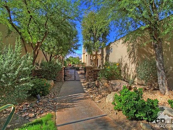 Spectacular Southwest Mountain and Fairway Views and Newly Renovated Contemporary Turnkey Furnished and Ready for a Season in the Sun. Enter through a gated courtyard with great outdoor living space and mountain views. Glass door Entry to Open Great Room with Dining and Kitchen featuring walls of glass with clerestory windows open to stunning Mountain Views. Great Room with Fireplace and Kitchen with Granite Countertops and Breakfast Bar. Master Bedroom Suite features sliders to courtyard terrace and a stone filled bath and walk-in closet. Guest Bedroom Suite features sliders to courtyard terrace, ensuite bath and walk-in closet. Covered Outdoor Living as well as extensive patio space with pool overlooking fairway of the Pete Dye Course and Southwest Mountain Views. 2 car garage + golf cart. Stoneridge low HOA dues include a social and fitness membership to Mission Hills CC. Recently renovated and ready to enjoy the season - come home to your place in the sun!