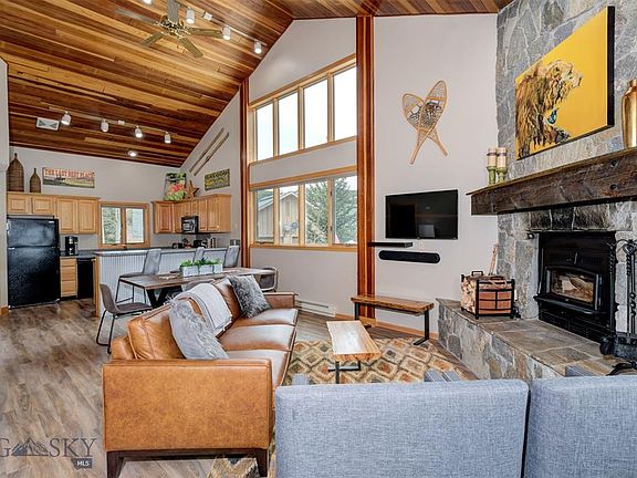 Look no further for a basecamp to winter adventure and summer fun than this newly renovated 3 bedroom, 3 bath Big Horn Condominium. This ski in/ski out property is ideally located across from the Poma lift and minutes from the Mountain Village and Lake Levinsky. It is freshly painted with new flooring,counter tops, plumbing, window treatments, furnishings, TVs, linens and kitchen amenities. The main level boasts an open concept with cathedral ceilings and large windows which provide an abundance of natural light to this meticulously maintained end unit. Enjoy the wood burning fireplace on winter evenings and the deck in the summer. All 3 bedrooms are large in size and have en suite bathrooms. Plenty of storage is available in lock off closets and the attached single car garage.