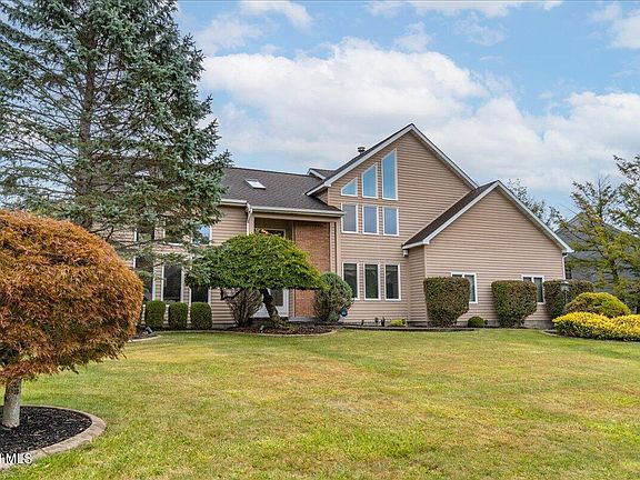 Welcome to this stunning 5 BR 3 BA contemporary home in a prime Slingerlands location. Curb appeal abounds with lush landscaping, gorgeous paver walkway (2018) & striking front double doors (2018). An expansive living room/family room features woodburning fireplace, soaring cathedral ceilings & sleek windows that provide abundant natural light throughout. 1st floor bedroom & full bathroom present wonderful options for in-law, nanny or home office space. 2nd floor boasts generous primary bedroom w/ 2 walk-in closets, cedar closet, loft space, & 3 other ample bedrooms w/ plenty of closet space & storage. Spacious deck overlooking a park-like setting is perfect for entertaining. Don't miss the opportunity to own this custom home in the top rated Bethlehem School District (Slingerlands Elementary), w/ easy access to shopping, Rail Trail, highways & all that Bethlehem has to offer.