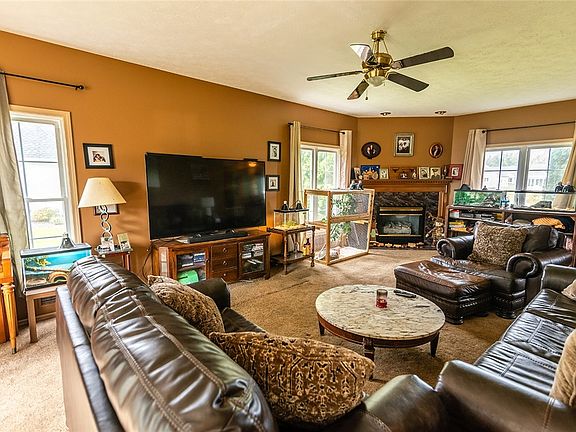 Nestled on a peaceful cul-de-sac within the Spencerport school district. Enjoy breathtaking water views while you sit back and relax on the spacious deck or in the pool. This 4-bedroom, 3.5-bathroom masterpiece offers the perfect blend of elegance and tranquility. The chef's kitchen is a culinary delight, featuring granite countertops, stainless steel appliances, and a large center island. Fully finished basement includes a dedicated workout room, pool table, built-in wet bar, full bathroom, built in sauna and egress to the garage. Come check out recent updates done during our open house Friday 11/10 3-5PM