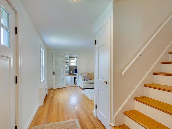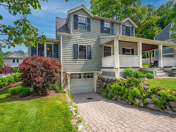 Tasteful updates & thoughtful design shine through in this meticulously cared for Cape-Cod style home. Step into the bright and airy dining room adorned w/ elegant French doors that flow seamlessly to the classically updated kitchen. The kitchen features an expansive marble breakfast bar, providing ample space for entertaining & casual dining, while overlooking the family room w/ its wall of windows that flood the space with natural light. The spacious living room is graced by a charming fireplace & access to the rear deck. A few steps down from the living room, you'll find a bright, cathedral ceilinged office space w/ transom window overlooking the workspace. The master suite exudes timeless elegance, complemented by a beautifully updated limestone bathroom. Two add’l bedrooms provide ample space & charm. Lower-level bonus room is perfect for a media/playroom. Outside, the wraparound porch invites you to unwind and enjoy the surrounding perennial gardens. Custom cabinetry throughout.