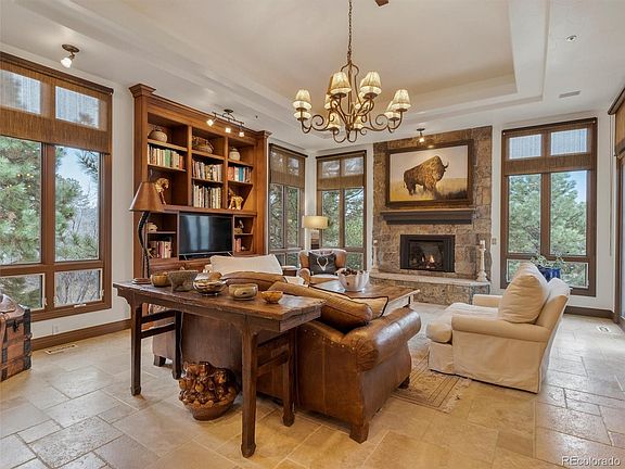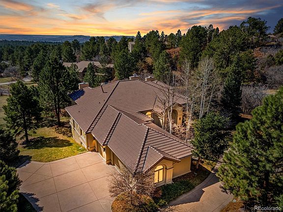 **Unique Combination of VIEWS and PRIVACY in Castle Pines Village!** Welcome to 14 Borealis Way, an exquisite luxury home located on a quiet, premier street in the Village at Castle Pines. This 5 bedroom, 5 bath house is truly outstanding, with no next-door neighbors and long views. Brazilian granite, imported Italian tile, acacia floors, and knotty alder cabinets are just a few of the high-end finishes throughout the home. The many arches and high ceilings create a grand and spacious atmosphere. In addition to the luxurious finishes, the home includes built-in bookshelves, four fireplaces, 2 full kitchens, and Wolf and Asko appliances. Two home office spaces offer flexibility for remote work. The home is conveniently situated just two minutes from Gate 1, which is staffed 24/7, providing security and peace of mind.