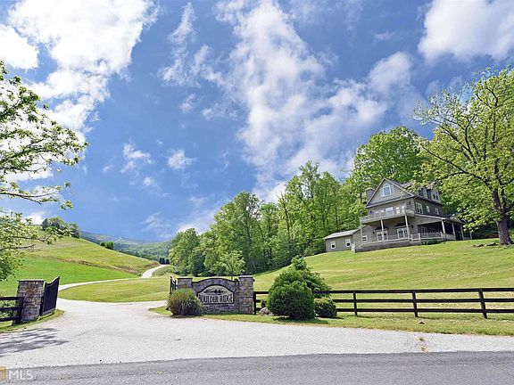 ASTONISHING TRACKROCK Property. 12.8 Acs of Rolling Pasture, w/OUTRAGEOUS 360 views of Brasstown Bald & Surrounding Mountains & Valleys. This 3BR/3BA Tastefully Appntd Home Features all Necessities on the Main Floor. Master suite, Laundry, Wide Doors, ADA mindful. Zero step entry, approx 12' high wood ceilings, 2x6 const, large mudrm, "Bobby Rich" cabinets w/granite tops, Lrg Mstr Ste w/ generous closet, 6 ft soaker tub w/ tiled surround. Fabulous Open Living / Dining. Upper floors offer Additional Master suite loft and Cathedral Great Room. Area for 2nd Kitchen. 2 Car Attached gar PLUS Oversized 2 car gar w/ loft on the back of the property. UNRESTRICTED w/ small creek running THRU. Perfect for Horses / retreat / event center or privacy. Land has been PRE-Divided so INVESTORS, Sell off the extra Lots or Build Specs to sell on the Market.
