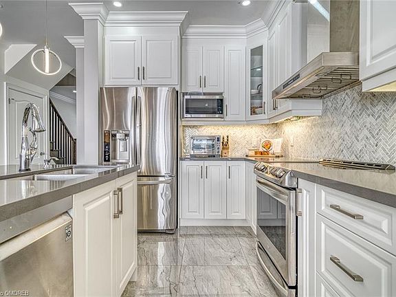 Why get the rest when you can have the best? This showpiece town home is situated in a sought after neighbourhood with plenty of conveniences at hand. Located in Stoney Creek you can have over 1600 sf of finished living space with 3 bedrooms, 2.5 baths and a beautifully upgraded main floor living space combining style and luxury. Over $45,000 have been added to the builder design to create a stunning home chefs kitchen with quartz countertops, island w/ pendant lights and double sink, gleaming tile floors, herringbone backsplash, upgraded LG appliances and a wall to wall wet bar with wine cooler perfect for entertaining. Add to this the crown moulding, pot lights in both the kitchen and living/dining where you find engineered wood floors and the feature stone fireplace. Dining area allows for walkout to the back yard/patio. Take the gorgeous stairway up to the second floor to the master bedroom w/ walk in closet and ensuite. A flexible space on upper floor allows for office space or a lounge area. Two other spacious bedrooms, a full bathroom and convenient laundry area complete this floor. The 20 x 40 yard is waiting for your imagination as well as the insulated basement with 695 sf and r/i plumbing. Parking for 2 in the driveway and attached garage. Bring your own style to complete this one of a kind home. Situated in sought after area with schools, parks, conservation and quick access to hwy, airport and wine country.