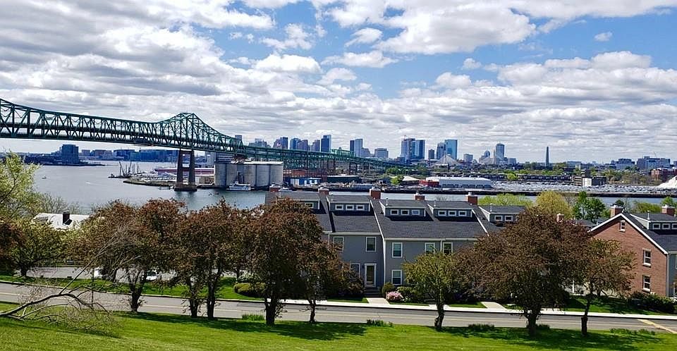 Coveted neighborhood of Admiral's Hill offers breathtaking views of the Boston Skyline, Mystic River, Tobin Bridge and beautiful green spaces, tennis courts, waterfront parks, marina, and tree-lined streets & sidewalks! This closeknit community strikes the perfect balance of tranquil living w/easy access to Boston/Logan Airport only minutes away via the Tobin Bridge, Commuter Rail & Silver Line! Move right into this rarely available 3 BR, 2.5 BA end-unit Townhome w/Garage Parking & private deck boasting spectacular views from every room! 1st flr features hardwood floors, a fully applianced kitchen w/breakfast bar and dining area w/bay window, a half bath, and a spacious & sun-drenched living room w/fireplace and slider to a private deck w/incredible water views! 2nd flr boasts a beautiful master bedroom w/cathedral ceiling, 2 skylights, an ensuite bath & ample closet space, and a generous guest bedroom and full bath. 3rd flr features a versatile 3rd bedroom/office!
