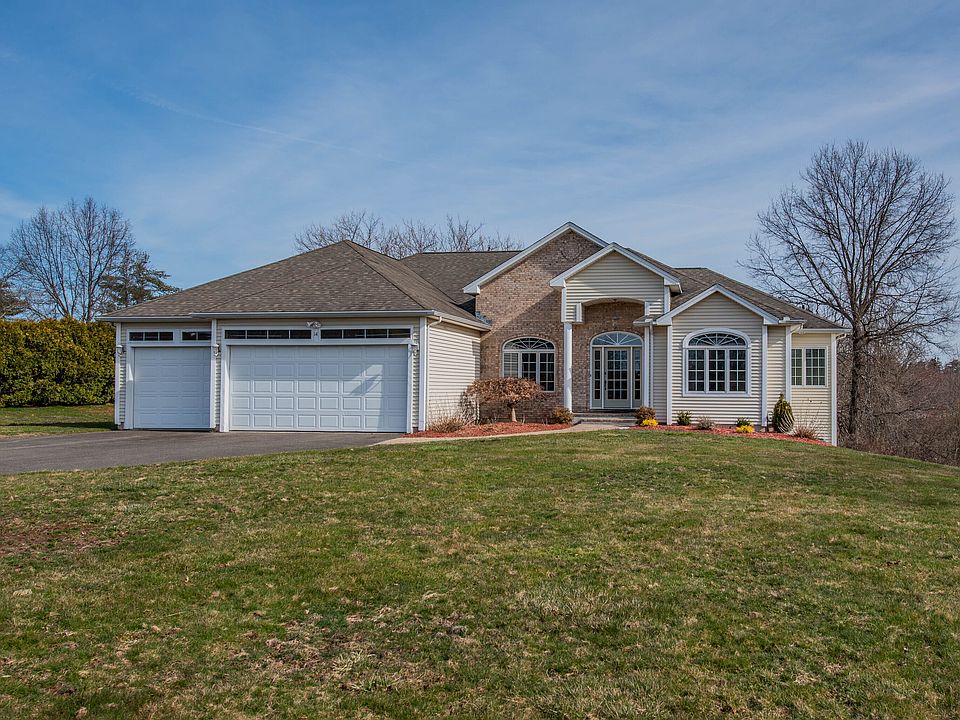 Welcome to this ranch-style home located in a cul-de-sac neighborhood in one of the most highly coveted areas of Bloomfield. A striking paver walkway invites you to the grand entrance adorned with elegant brickwork and columns. Upon crossing the threshold, guests are greeted by a formal foyer. The home features a formal living room with cathedral ceilings, currently repurposed as an office, and a formal dining room, both graced with palladian-style windows. The heart of the home lies within the kitchen, boasting cathedral ceilings, GE Profile appliances and generous counter space. Transition seamlessly from the kitchen to the deck, where one can revel in the breathtaking sunsets.The open family room is accented by coffered ceilings and a natural gas fireplace. The private primary suite situated on the right wing of the home features two walk-in closets, cathedral ceilings and an indulgent jacuzzi tub. The left wing of the home encompasses two additional bedrooms, a full bathroom, and the convenience of a first-floor laundry room. The expansive full walk-out basement, boasting high ceilings and pre-plumbed for a full bathroom, presents an opportunity for additional square footage and customization. Ample storage is available in the three-car attached garage. Located mere minutes from golf courses, prominent employers, Bradley International Airport, and within a short distance to Bishop's Corner, West Hartford Center, and Blue Back Square.