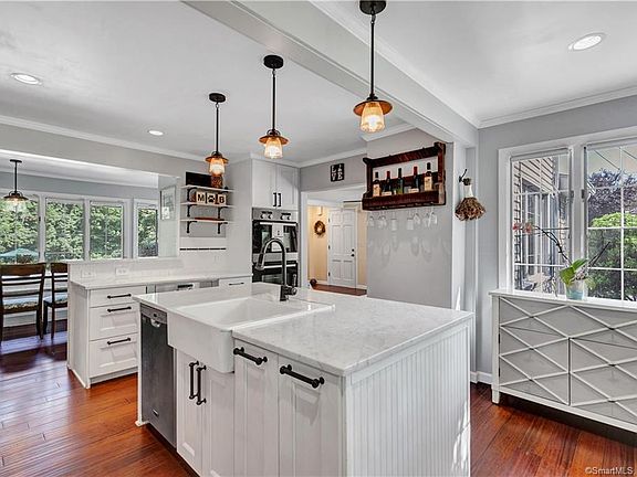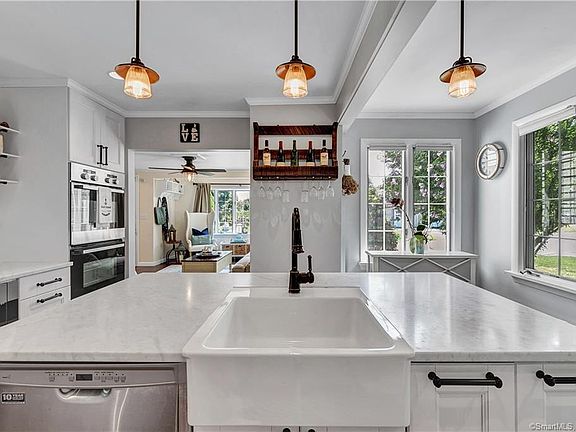 Beautifully updated and thoughtfully designed, this home features your most sought-after desires. Landscaping and a large, level yard set the tone with curb appeal. Stepping into the main living areas, you will find oversized picture windows amplifying natural sunlight and wide-plank wood floors. The chefs kitchen looks like it belongs in a magazine. Prep meals on the island with a farm sink, cook like a pro with double oven, and revel in the gorgeous details throughout. Sit at the counter bar for a quick snack, or gather in the dining area with built-in bench. The master ensuite is conveniently located on the first floor and feels like a true retreat. The outdoor living spaces are also a highlight. The property allows for entertaining, and a stone fire pit is perfect for relaxing in the evenings. Sidewalks in the quiet neighborhood lead you to the award-winning elementary school or the arboretum at Connecticut College. Easy access to highways, and in proximity to restaurants, casinos, and Coast Guard Academy. Additional features include plenty of storage in the basement with dehumidifier, energy-efficient heat pump system, treated lawn, and options for gas hookup. Call today for your private showing!