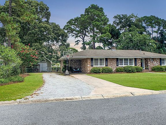 Savannah grey brick home located in beautiful Magnolia Park. 2210 square feet of living space with 3 bedrooms and 2 1/2 bathrooms. This home has a foyer, formal living room with a fireplace, formal dining room, eat in kitchen with granite counter tops, and den with beautiful exposed brick. The den has a built-in bookcase with recessed lights. The laundry room in this home is fantastic with lots of cabinets for storage and granite counter tops. The home has speakers that are wired in the den and living room. There are recessed lights in the laundry room, kitchen, den, and hall. There is a large shed built in the backyard as well as a double gate that makes it easy to back a boat into. The backyard is a great place for entertaining with a brick fire pit, built in gas grill, and large patio. It overlooks the neighborhood playground and pool which is fabulous! This house is centrally located in town and is close to schools, shopping, downtown, and much more! It has a great neighborhood association that plans many fun events throughout the year such as the July 4th parade and cookout. In the past 10 years this house has gotten a new roof, AC unit, and water heater.