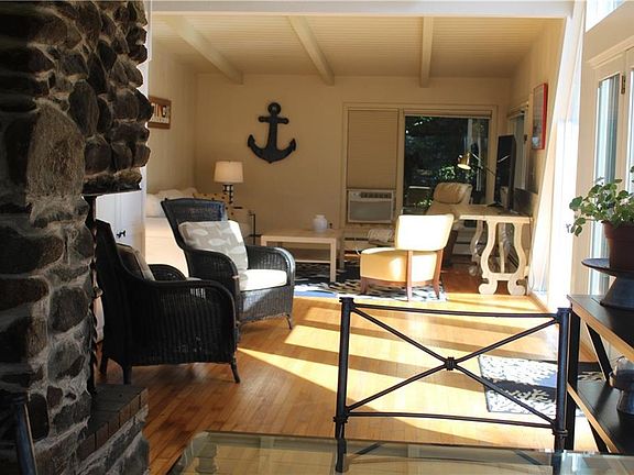 WINTER FURNISHED RENTAL FALL 2022. Contemporary cottage sited on a large yard with a semi circle driveway. This Jamestown getaway features a vaulted ceiling with a stone fireplace dividing the social space from the kitchen. Two bedrooms separated by a large full bath. The loft is a perfect office retreat with a half bath. Full basement with washer and dryer. Access to deeded beach. This a seasonal rental. Available 10/14/22- 4/30/23. Pets Negotiable. Includes Furnishings, Garden Area, Parking, Snow Removal, Water. 3 Parking Spots. Deeded beach access. Washer/Dryer. No smoking.