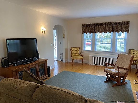 Warm, inviting home with loads of charm and character. This 3-bedroom home has large, light-filled rooms, tons of storage space and a wood burning fireplace. There is a 3-season room located off the living room. Eat-in kitchen, new stove, ss refrigerator, dining room and a half bath complete the first floor. Upstairs has large master bedroom, two additional bedrooms and a large bathroom. This exceptionally well-maintained home sits on a level, landscaped lot with lots of perennials and is in the Green Acres section of Ellenville. Conveniently located within walking distance to restaurants, shops, and Shadowland Theatre. Just a short drive to Montreign Casino, Kartrite waterpark, Bethel Woods and Minnewaska State Park.