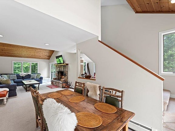 This modern Strattonwald gem is the ultimate plug-and-play Vermont summer house with location, style, convenience and a lake-side lifestyle to remember. Three living spaces -- one on each floor -- allow for plenty of overflow in the morning and afternoon, with two fireplaces ready for friends and family. Four bedrooms plus sleep loft with its own hang-out space lend space for the whole crew! Open-concept kitchen and dining flow into the main living room as the idyllic entertainment space. Located on two acres right next to the Strattonwald pond, there's room for dog walks and tennis time galore. Renter use of Stratton pond and tennis facilities is restricted to resident bond-holders and long-term renters only (over 1 month). Caretaking service for garbage will be responsibility of renters. Agent can suggest service providers. NOTE: Barn on property will also be used as a rental: see aerial photos. Welcome to your Vermont summer! MEMORIAL DAY WEEKEND - LABOR DAY WEEKEND. Fall rentals available upon inquiry.