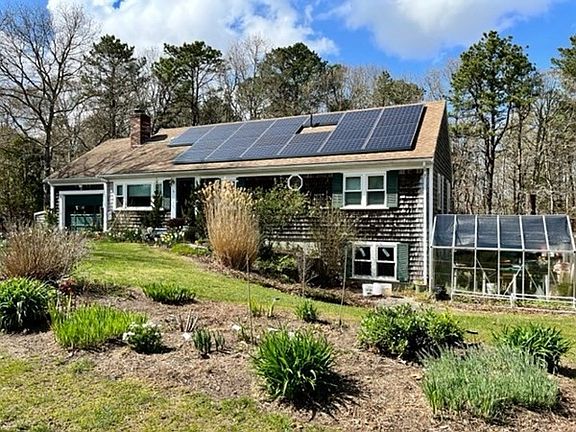 Do it in Cotuit! Located near the end of a quaint cul-de-sac, this remarkable Ranch home with 3 bedrooms, 2 baths gives all the advantages of one floor living. The living room flows into a large dining/kitchen combo area is off the slider to the deck, and all are ready for a new owner to personalize. The main bedroom has it's own private full bathroom while the other two bedrooms share the full common bathroom in the hallway. Opportunity to expand the living space can be found in the spacious lower level walkout basement. The Cape Cod classic shingled exterior also sports some modern upgrades including newer roof-mounted solar panels and wall-mounted heat/ac units. Always handy to have an attached garage, large rear deck for entertaining, outdoor shower, side yard solarium and many floral, fruit and vegetable raised beds that the owner lovingly cultivated over the last decade. Passing Title V from February 2023 already in hand! Your next Cape Cod summer could start in 2023!