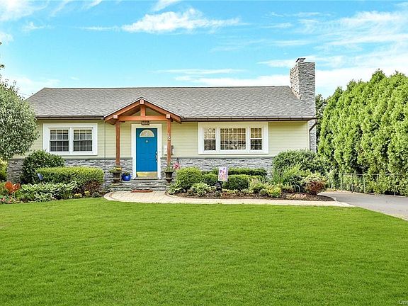 Welcome to this beautifully updated Ranch on level picturesque property. As you pull up to this home, notice the stone accent, cedar siding, walkway with pavers, and portico. It is apparent from the start of entering this house, it is a place to call home. Slate entry hall, leads to gleaming hardwood flooring, built-in cabinets, wood burning fireplace, and granite counter with stools. Spectacular kitchen is appointed with custom maple cabinets, stainless steel appliances, granite counters, wall of cabinets w/built in desk and slider out to private decks. New hall bath, master bedroom, and 2nd bedroom finish off this floor. Lower level offers family room with led lighting, exposed beams, portable A/C unit, bedroom, bath, exercise room with door out to yard. Enjoy family gatherings w/ 2 decks, private yard, with calming koi pond. Many upgrades include stonework, cedar siding, roof, solar, bath, blown-in insulation in walls, & finished basement. Taxes do not include Basic star of 1632.