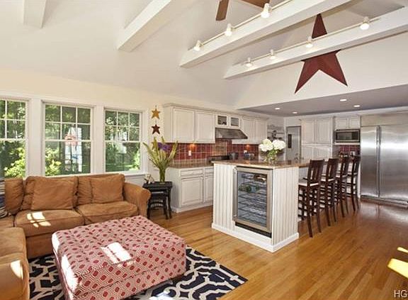 Style, comfort, and charm abound throughout this warm and wonderful Cape Cod. Inviting living spaces are filled with character, such as the sunlit living room with large front windows, built-in cabinetry, wood-burning fireplace, and French doors leading to a slate terrace. The kitchen/great room with sky-lit cathedral ceiling, walls of windows, a wood-burning fireplace/stove, and door to the terrace opens to a chef's dream of a kitchen, outfitted with high-end appliances, a fabulous center island, and a built-in banquette. The main floor master bedroom has wall-to-wall built-in armoires and a sliding glass door to the side yard. Upstairs are two spacious bedrooms, an updated hall bathroom, and an open work/study/play space. The property is delightfully landscaped with colorful hydrangea and rhododendron and a fairway-like lawn in the back yard. Substantial upgrades and improvements include roof, siding, windows, and above-ground oil tank. A storybook property in a storybook setting.