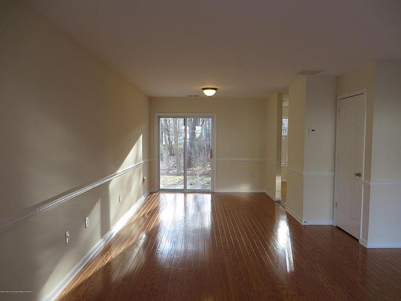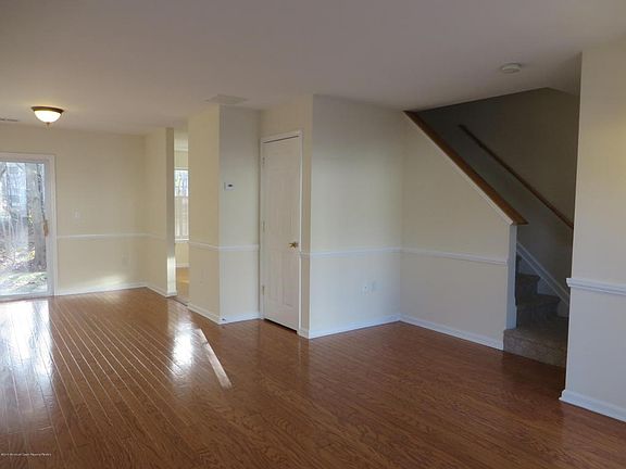Clean and freshly painted 3 bedroom, 2 1/2 bath townhome located in Fox Chase. This private home backs to the woods and has a small patio for setting up a barbecue. Wood floors in the living room and dining room, new carpet in all 3 bedrooms, 2nd Floor hallway and stairs. Newly installed toilets, vanities and faucets. Hot water heater and A/C less than 1 year old. Conveniently located near Rt 18, Garden State Parkway and minutes to Jersey Shore beaches. Low Maintenance fees! 2021-04-13