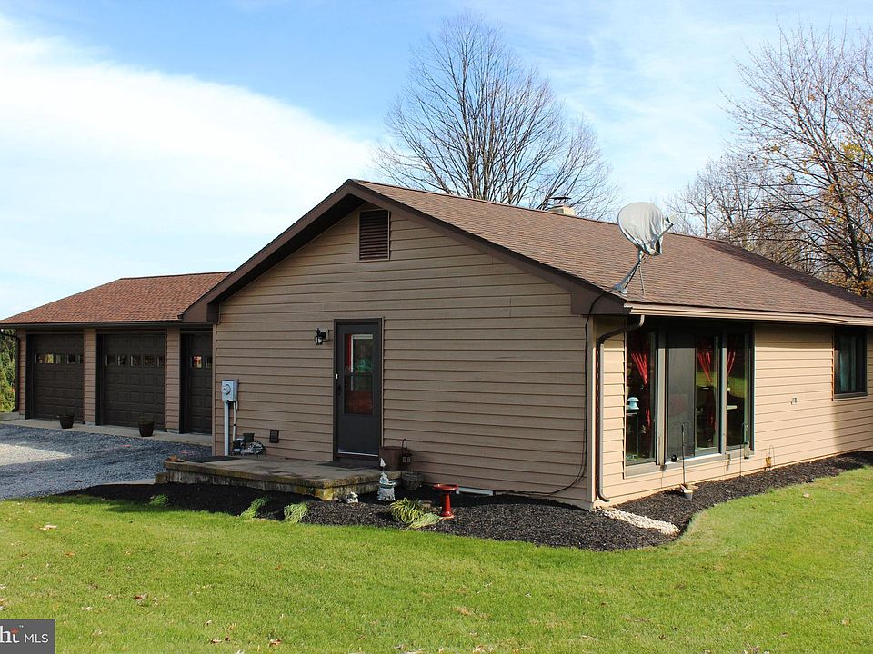 Beautiful country two acre property with room to roam. Property features Ranch style home with new roof, new siding, and new 3 car garage for all your toys. Eat in Kitchen with wood new wood floors, updated bathroom, and living room with views of the outdoors. Full basement that has 2 finished rooms, extra laundry and storage. Having a power outage? Home generator included, Want to save on heating? Home includes wood/coal stove for back up heat in basement. The large rear yard has plenty of room for all entertainment needs; you are just minutes away from the Lehigh area . Property priced in value range of recent appraisal.