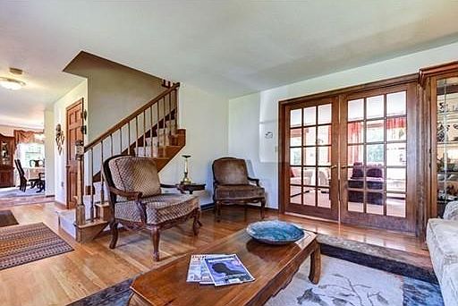 Classic Colonial privately sited on a beautiful lot in a great neighborhood location. Cherry and granite kitchen open to family room with fireplace leading to a deck overlooking the private rear yard. French doors between the living and family rooms offers flexibility when entertaining. Spacious master suite with sitting area, walk-in closet, and en-suite bath. Hardwood floors in entry, dining room, and living room. First floor office/sun room. Central air just in time for summer! Updates: Roof 2009, AC 2010, Furnace 2011, Water Heater 2011, Front Door 2012, Washer/Dryer 2013. Electric and gas average about $245/month for current owners last year.