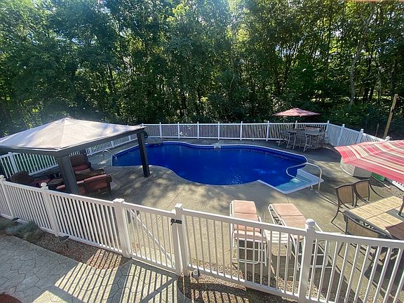 Welcome home!! This Blackstone Gambrel is the dream home you've been waiting for all year! This home offers three bedrooms, with updated kitchen and bathrooms, large great room with cathedral ceilings and freshly painted walls and new carpeting, a formal living room with pellet stove, and a formal dining room. The whole first floor has an open floor plan, wood and/or tile flooring, and freshly painted rooms. Just when you think the home couldn't get any better, you walk out from the kitchen slider to a screened-in porch overlooking the beautiful yard with its in-ground fenced-in pool, built-in firepit, hot tub, gardening area and level side yard. If entertaining is what you like to do - this is the home to do it in! Home also offers two car garage, shed, and professional landscaping.