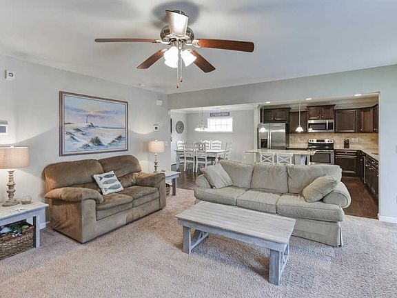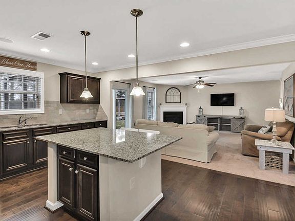 GORGEOUS MOVE-IN READY HOME WITH HUGE BACKYARD ON OVER HALF AN ACRE! This 5 bedroom/3 bath home is full of gorgeous features! Natural light spills throughout the flowing layout as you move with ease from one room to the next. The great room features a cozy fireplace and open access to the kitchen! The spacious and bright eat-in kitchen boasts hardwood floors, granite countertops, large island with seating and stainless steel appliances! The bedroom on the main floor would make the perfect teen or in-law suite with access to a full bath! The owner's suite features gorgeous tray ceilings, walk-in his and her closet and luxurious attached en suite with soaking tub! Each additional bedroom offers ample closet space and access to full shared bath. Enjoy relaxing or entertaining on the screened in porch or gather around the gorgeous firepit that looks out onto the huge, fully fenced backyard!
