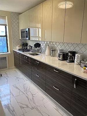 Beach-beautiful , fully brand new renovated,bright and sunny ,2 bedroom / 1 bathroom . The kitchen is with window a beautiful breakfast bar. The apartment is located on the 3 floor of Bay Shore Gardens, a well maintained building that offers parking (waiting list), laundry room and allows immediate sublease. With a low maintenance of $670. This is an incredible opportunity to live in fabulous location steps away from all major public transportation, shopping district and the ocean.