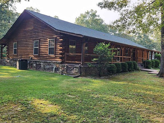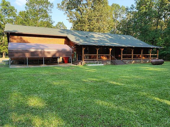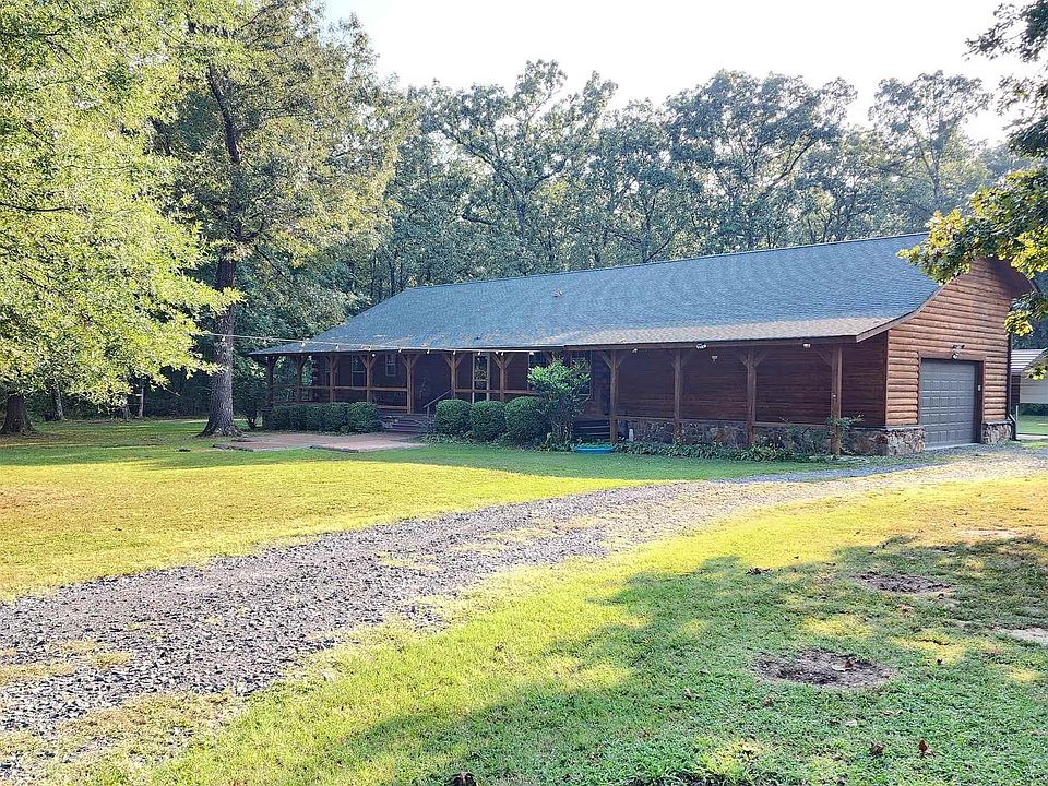 Back in the market because other buyer have a contingency on sale. Don't miss this opportunity! What about living in the country? 3.5 acres of log home with tons of trees! w/a 56-foot covered rear porch, and an 85-foot covered front porch! New roof July 2022, Garage floor epoxy coat FEB 2022, Additional parking concrete and carport DEC 2021. Front and back porch decks-stained JUN 2021 Crawl space encapsulated $20,000 investment MAY 2021 with dehumidifier Entire cabin cleaned and re-stained April 2023, New hot water heater winter 2021 New HVAC unit summer 2021 The house is ready to go. Needs nothing else. w/oversized family room w/vaulted wood ceilings, open eat-in kitchen w/island. Principal bedroom has a large bath w/huge walk-in closet! Private office off the family room! Plenty of room to entertain, garden, four wheel or just relax! Floored attic above for mega storage. The home has a septic w/private sewer treatment center. Propane tank gets fill up once a year. House is on Electric Central H/A the seller loves the heaters that you see as an added heat source... just in case the electric goes out. Don't pass up this fantastic opportunity. Make your appointment today!