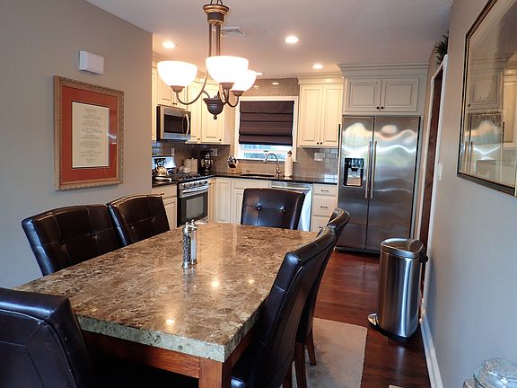 Welcome home to this spacious three bedroom ranch located near schools, shopping, and highways. New kitchen in 2015 with stainless steel appliances, granite countertops, hardwood floors, and new cabinets. Large family room with vaulted ceiling and sky lights. Wood burning stove insert in Living Room for supplemental heating and cozy environment. Enjoy the backyard oasis including a large Trex deck, firepit surrounded by a stone sitting area, hot tub, and koi pond. New paver stone walkways and concrete driveway with parking for 6 cars. Large mostly finished basement with plenty of storage space. Move-in ready!