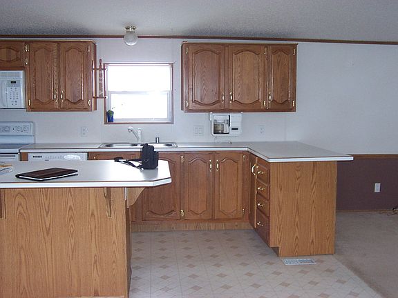 1994 Wick manufactured home on permanent foundation with 20x24 rec room addition for a total of 2187 square feet. Metal roof on house and barn, new shingles on garage roof in 2014. Wood stove, electric forced air heat, and propane heater. Open floor plan with large kitchen. Newer laminate flooring in living room, dining room and rec room. Tile in rear entry. Front and back decks with beautiful views. Detached 2 car garage. 30x36 barn with corral and new automatic horse waterer. 21.999 acres, fenced and cross-fenced. Well water recently tested. Fenced yard. Landscaped. New application of road base to driveway and private road, summer 2014. Located just off a maintained county road. Available late spring/early summer. No owner financing.