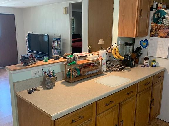 Rare find, Double wide with 3 bedrooms, 2 full baths including bath in master bedroom. This is a desirable community which provides a Pool and Community Center. The monthly lot Fee includes, water, sewer, trash removal, snow removal from roads and use of the pool and community center. Recently refreshed unit has been freshly painted and new flooring installed in living room and master bedroom. This unit was modified to add a pantry off the kitchen, extend the kitchen and give access to the rear porch with sliding glass doors. All Applicants must be approved by management company before offers will be accepted. Must have non traditional financing, cannot obtain a mortgage on a Mobile Home.
