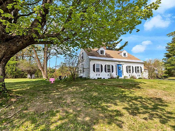 This adorable, bright and sunny Cape is situated in a perfect village location within walking distance to the elementary school. Entering the classic cape foyer is the front to back country kitchen with breakfast bar and fantastic built-in bench, perfect for putting on for boots and shoes or just and gazing at the lilacs in bloom. Also off the kitchen is the laundry room/office, half bath and walk-in pantry. The kitchen is open to the inviting dining room. The entertainment sized living room has a fireplace and built-ins for storage an opens into a sunroom. The second floor has a front to back primary bedroom and to other spacious bedrooms all with hardwood floors and a full bath. There is a covered porch, workshop and two-car garage as well as perennial gardens , patio and shed so close to the village amenities such as the library, post office, general store and ball fields. Subject to Sellers finding a suitable property. Showings begin at the Open House at 11:30 on 5/20.