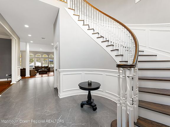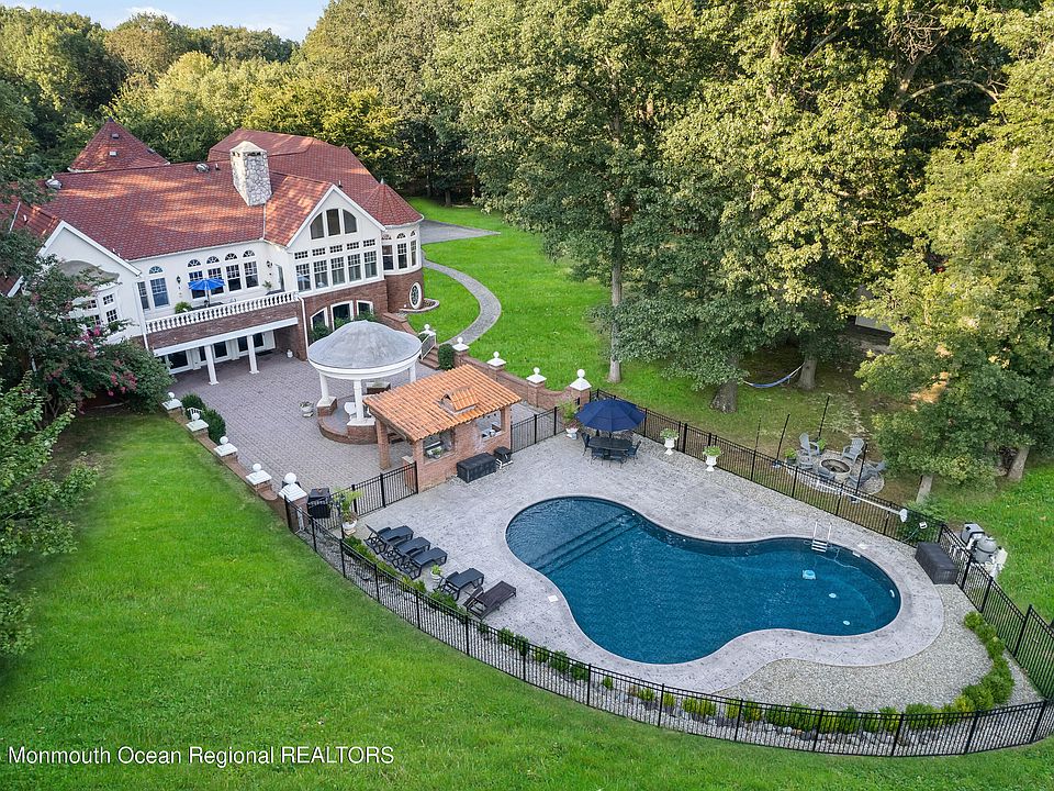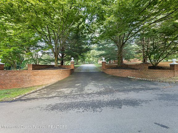 North facing Custom Built home in Millstone Twp! There was no expense spared when this home was built by the original developer of this community for him and his family. With over 5,000 sqft of living space and every detail from the four sided brick, full paver wrap around circular driveway, majestic columns, an elevator that spans 3 floors, radiant heated marble flooring in the bathrooms and kitchen, all new modern design, molding from top to bottom, Anderson windows, custom double sided brick fireplaces, 4 oversized bedrooms each with private ensuite bathrooms, and one of which is on the second level with a private staircase. This is like no other on the market with wide open windows overlooking 5+ sprawling acres, and an entire level for entertaining which spills out to a brick courtyard, new inground pool, gazebo and outdoor kitchen with statuary for 20 Don't forget the picturesque pond stocked with colorful Koi surrounded by a natural habitat you can sit and relax in. You will not be disappointed!