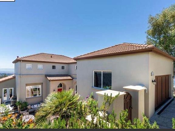 Contemporary Mediterranean with Bay views perched in the Claremont Hills. Spacious tri-level open layout including kitchen-family room, four-plus bedrooms and a full bath on each floor. Luxurious master suite, view-savoring balconies, plus garden courtyard.