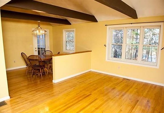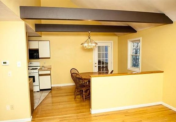 An abundance of square footage is available in this one bedroom, two full bathroom townhouse. The first floor is hardwood and has a large living room, a spacious eat in kitchen with an entrance to the deck, a newly updated full bathroom with washer dryer hookups and a family room/dining room with sliders to a deck that overlooks a beautiful wooded pond. A staircase leads to the master bedroom suite with multiple rooms that offer endless possibilities for use - sleeping space+office space/den a newly updated finished bathroom and a large closet. New carpet just installed on second floor!! A spiral staircase leads to your spacious walkout basement with sliders, and has a large closet/storage area and multiple rooms that can be used as is for a workshop and more, or can be finished into additional living space. Basement also has a washer dryer hookup. This townhouse is conveniently located to both Route 93 and Route 495 for an easy commute. PET FRIENDLY TOO!