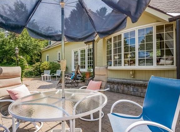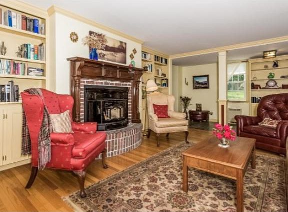 FIND ELEGANCE AND CLASSIC CHARM IN THIS EXPANSIVE CAPE- Welcomed by its appealing circular drive& distinctive professional landscape design. The entry opens to the sweeping living room space. The focal point is the fireplace insert & hearth with moldings, brick & built ins. Enjoy outside views through the wall of glass to the manicured paver patio-oasis. The dining room has a wide bow window seat. The kitchen-nearly 20' in length-has a long island, spacious eat in area, built ins & fireplace. Steps to the great room addition with cathedral ceiling, brick features, enamel heat stove & skylights. There's a first floor master w/bath & walls of closets. The 2nd floor has two bedrooms, great storage space, full bath & a space to work or relax. LL partially finished & sauna! Lovingly maintained-with new or newer roof, heating sys, water filtration, windows & insulation. Convenient location to shop & commute. -Envision friend & family gatherings in this grand entertaining home-Inside & Out.