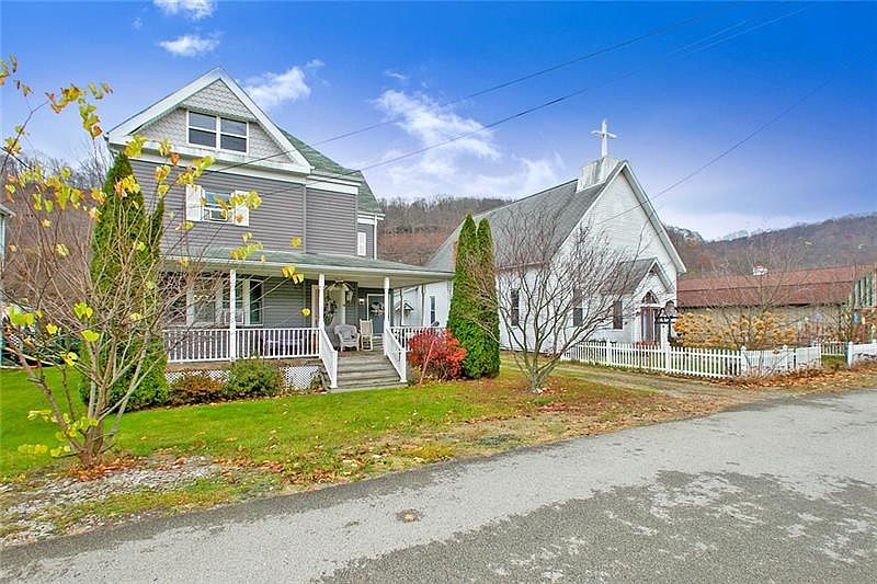 Unique property with great potential! This home/property is just a short walk to the river, and bike trail. In the home the 4 bedrooms are all located upstairs past the beautiful stained glass window. Downstairs there are pocket doors in-between the living room and kitchen areas. Beautiful stone fireplace in the spacious dining room, and also a great wood burning stove in the kitchen to stay nice and cozy. Beautiful wood and stone in the home, adds to the rustic yet homely feel this house. This home sits on a property with a beautiful flower garden out back and it includes a quaint and homely church! The church has historic charm with the church bell out front and has all the pews. So much potential, to include a great Airbnb, Bed & breakfast, great for for riders on the GAP trail & rafters/kayakers for the Youghiogheny river!!!