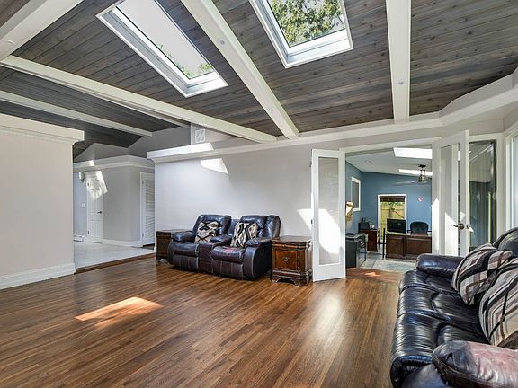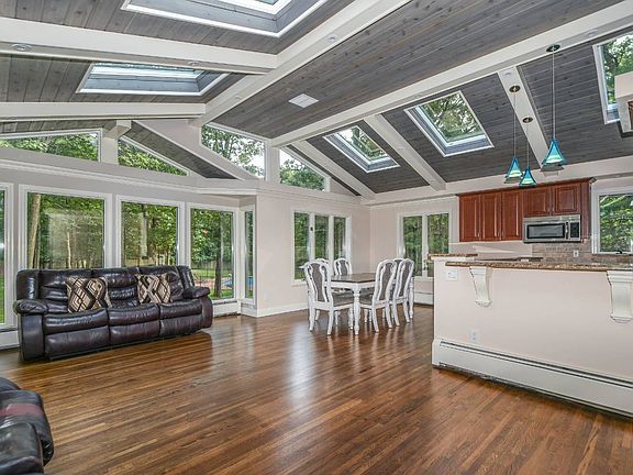 Seller on Vacation and Not showing till 12/18 Seller motivated New Renovation!Private Oasis! Expanded Ranch with 4 beds could be 5 Bdrms, 4 FBaths, Over 4,000SqFt Living Space! Brand New Cathedral Cedar Ceilings w/Custom HiHats in Every Room! Floor to Ceiling, Wall to Wall new Windows with 15 New Skylights! New Hwd Flrs/CAC/CVAC, Master Suite w/New Coffered Ceilings/WIC, Private Office w/OSE, Finished Bsmt w/Kit, FBth & OSE. 1+ Acre of Flat Lush Property w/Fenced Gunite IGPool w/Safety Locks, Pool Cabana w/FBth, Full Sports Court & More!