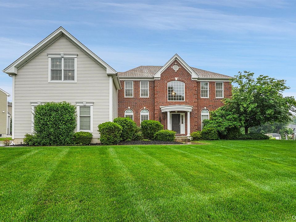 Nestled in sought-after Four Corners this stately brick-face Colonial blends comfort, style and convenience. Boasting five bedrooms and three full baths on a premium, level lot. The Grand two story entry flows into a Great room with vaulted ceilings, gas fireplace and a wall of windows. The gourmet Kitchen with large center island is well equipped. The elegant Living room and dining room feature hardwood floors, tray ceilings and custom moldings. Home office with built-ins, guest bathroom, and convenient laundry complete the main level. An expansive primary bedroom suite includes a spacious sitting room, tremendous walk-in closet, and a spa bathroom. The basement level features an additional bedroom and full bath along with a recreation room with many potential uses. The spacious three car garage has plenty of extra room for storage and the lush, level yard with stone patio could easily accommodate an in-ground pool. You will love the recently renovated 20K sq. ft. clubhouse and resort style amenities: outdoor pool, tennis courts, indoor and outdoor basketball courts, a 5-acre park, nature trails, 2 playgrounds, and a retail center. Something for everyone with indoor gym/fitness center, sauna, billiards room, Movie Theater and room for private events. Sought after muni water, sewer, gas heat; plus whole house generator and owned solar panels. Located just minutes from top-rated schools, shopping, and major commuter routes this property combines small town charm with big-time convenience!
