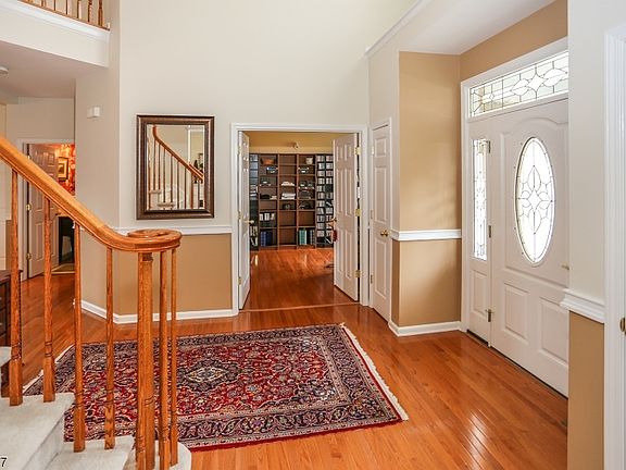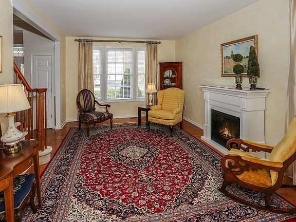 Live large in this immaculate home in great development. Cul-de-sac street, convenient location. Minutes to shopping and highways. Granite kitchen, media room in basement, large closets, ample storage1st floor office, light and bright. 6 ceiling fans, enjoy your sunset views from the over-sized bi-level covered deck. Backs to pretty lawn and woods. Hardwood floors, 4 1/2 baths! 2 furnaces, 2 a/c units. Large home in perfect condition. Large media room includes projection equipment. Master suite with sitting area. custom closet interiors throughout, library shelving in office, security system, flat screen TV and speakers in FR included.