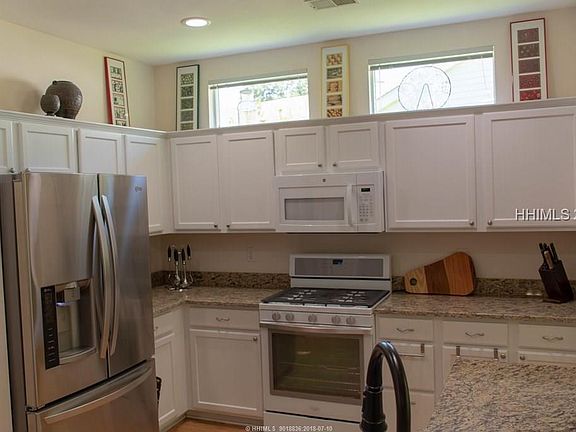 Fabulous opportunity to own this updated Hamilton-Jefferson model with private wooded view in back; close to amenities & gates. This home boasts a den & Carolina room; 3 bay windows; hardwood & tile throughout. Updates include: 2013-roof, granite counter tops, wood flooring, tile, ceiling fans. 2014-garage door and opener, Rinnai tankless water heater, blinds, range & disposal. 2015-HVAC Carrier complete system, SS LG French door refrigerator, frameless shower door, faucets, shower head. 2016-French doors w/transom in LR, metal/wood roll-out shelving in kit cabs, washer/dryer, multiple windows replaced, glass insert in front door & more.