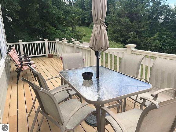 Here you will find great features for a family home at The Homestead - a beautiful Lake Michigan and sunset view, four bedrooms and 3.5 baths, two car garage and ski in and out from the "ski room." Situated on the golf course and ski slopes, this is the perfect spot for family entertaining and fun. The Great Room features vaulted knotty pine ceiling with skylight, built-in shelving, and stone fireplace. Adjacent kitchen/dining area walks out to a large Trex deck perfect for family barbecues! The well-appointed kitchen features new stainless appliances and granite counter tops. The spacious main level master suite with cedar lined closets offers privacy, large whirlpool tub, marble flooring and granite tops. Geo-Thermal heating and cooling is efficient and provides comfort year round throughout. Very recent updates include new stainless appliances and water heater, year old roof, new interior paint, and bedroom furniture. Recent remodeling has been done in the kitchen and ski rooms. This home has a new and up to date look! Furnishings are included with a few exceptions. This is the perfect up north home to share great memories with your friends and family!