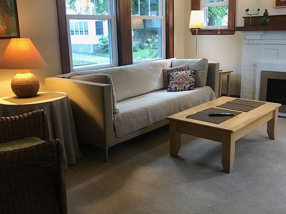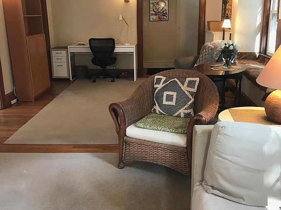 Sunny, 2-bedroom furnished apartment 2.5 miles to Harvard Square, quiet safe neighborhood, walk to Burbank elementary school. Spacious, fully equipped, 2-bedroom, 1 bathroom, large living room/study combination with modern gas fireplace, dining room and kitchen with pantry area. Apartment is child safe, deleaded and on first floor. Excellent closets/storage. Gas stove, dishwasher, new 2020 microwave, gas heat. Stainless 3-door Refrigerator, new in 2017, not pictured. Private washer/dryer in basement. Small open back porch, recently refinished shared back yard and grill with lots of plants and well-tended garden. Walk to the popular Fresh Pond reservoir jogging/walking path (you might see Sen. Elizabeth Warren). Also walk to golf course, tennis, and child-friendly Grove Street Park around the corner. Back bedroom can have two single beds or single bed and crib with changing table, (We have these.) or, without children, it can be a study or guest bedroom. Three window-unit ACs for seasonal use in bedrooms and dining room. One stand-up AC for livingroom, vents out the window. Owners pays water/sewer, renter pays gas, electric, internet. Two-family home with totally separate, private entrances. Owners live upstairs. Excellent schools, library, shops etc. Shared driveway parking for one car, non-tandem. Walk to bus, 10-minute bus ride to Harvard Square. Best for a one-year or 11 month rental. Most often it's a yearly rental for a Fellowship year. We often rent for 11 months, Sept-July. With Covid, we've opened it up to the non-academic community. Start date a little flexible, could be Aug 15. Prefer a one or two-year stay. Owner pays water and sewer. Tenant pays gas heat, electric, internet. Cats okay. No firearms, please.