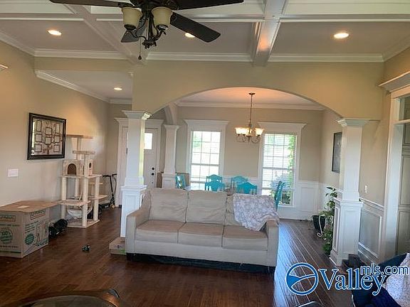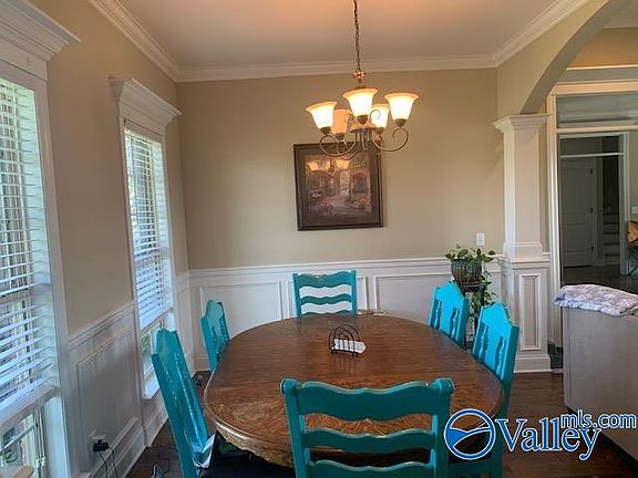 This spacious 4 bdrm/3 bath home, in Southern Heights & Meadows subdivision, offers open floor plan, beautiful HW flooring, coffered ceiling and gas log fireplace in living room. Large eat-in kitchen with pantry and granite countertops. Separate dining room. Owner's suite has trey ceiling, en-suite bath with walk-in closet, separate step in shower, double vanities, and whirlpool tub. Huge upstairs bedroom could even be a game room/man cave, if desired. Plenty of floored attic storage. Enjoy the outdoors on your patio/deck, huge privacy fenced backyard and your own fruit trees! Minutes to DAR school, shopping and medical facilities. Short drive to Guntersville and Huntsville. Call me today!