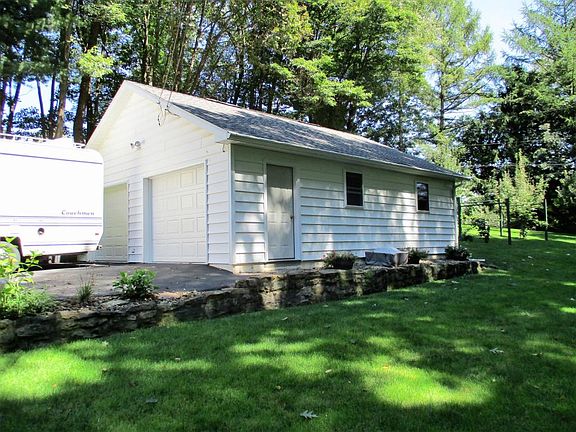 Country living within borough limits. 0.76 lightly wooded acre, amazing 2 car garage, wrap-around porch, patio, hot tub, 3 BR, 1 BA. A must see for country living!